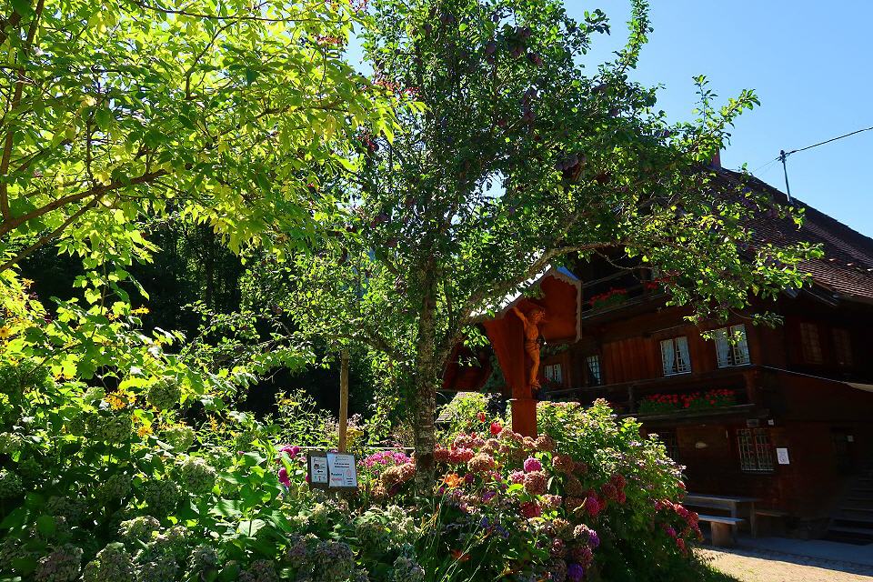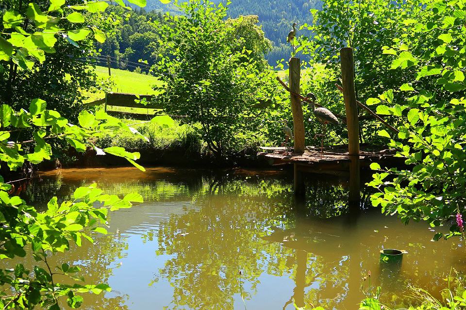 Von hier aus wechseln Sie die Straßenseite und gehen nach etwa 30 m rechts über die Brücke (Schild Stabhalterhof). Vor dem Hof gehen Sie rechts auf dem schmalen Pfad, der zur Wassertretstelle, zum Sportplatz und Schwimmbad führt. Entlang des Baches kommen Sie zur Kirchstraße, auf der Sie nach links gehen und nach rund 150 m den Paradiesweg erreichen, der ins Haslachtal führt. Beim Gasthaus Ratsstüble spazieren Sie durch das schöne Haslachtal und kommen an der Mühle des Vitztinerhofes vorbei. Bei der Einmündung in die Haslachstraße gehen sie links talaufwärts, vorbei an der Werkst#ttte Kaltenbach und erreichen nach eetwa 500 m die Schwanenmühle, die links unterhalb des Weges liegt.