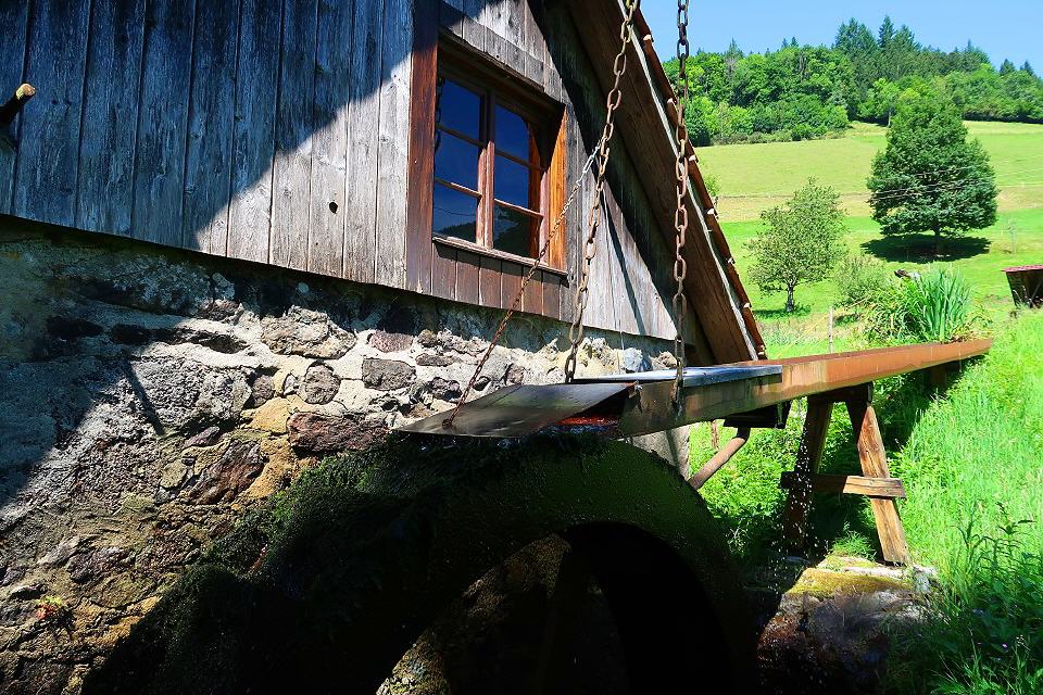 Die Vitztinermühle liegt etwas versteckt bei der Überquerung der Haslach. Sie wird heute zur Stromerzeugung genutzt. Dennoch ist sie mit ihrem oberschlächtigen Wasserrad und dem Mühlenkanal sehr hübsch anzusehen.