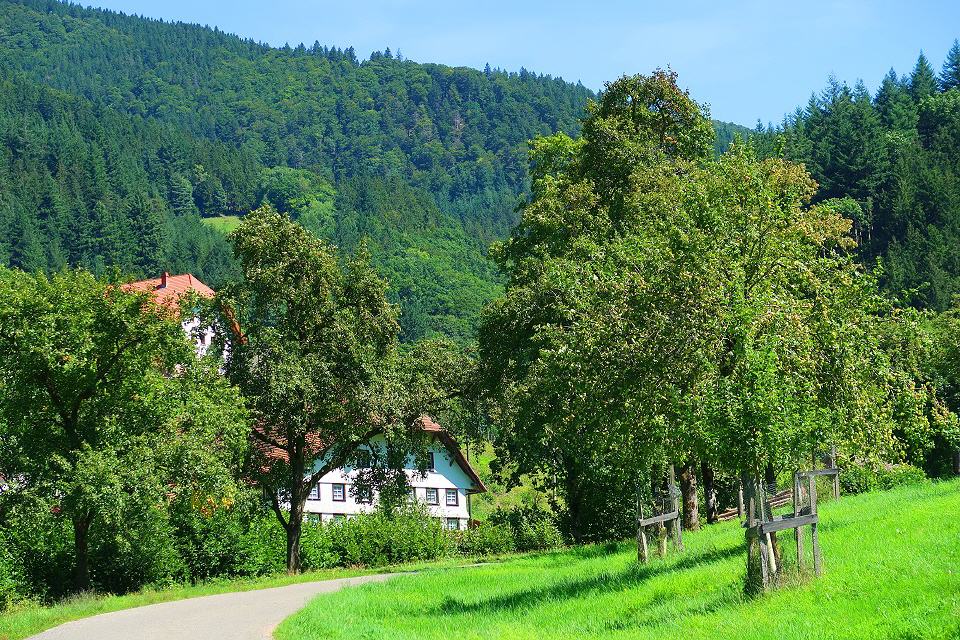 Der Weg führt oberhalb des Wehrlehofes nach rechts bergauf zum Sedleweg. Dieser ruhige Waldweg, auf dem Sie schöne Aussichten ins Haslachtal genießen, führt zum Gummeneck, wo Sie weitere schöne Aussichten ins Tal haben. Von hier folgen Sie dem Weg Nr. 3 in Richtung Ebertle. Nach 300 m gehen Sie rechts durch den Wald talabwärts, vorbei am Wehrlehof zur Wehrlehof-Mühle. Der Weg führt weiter durch das idyllische Weberloch. Wenn Sie aus dem Wald kommen, gehen Sie links ab zur Neuenbergstraße bis runter zur Talstraße. Dort gehen Sie links talaufwärts zum Oberen Felsen und überqueren die Talstraße direkt zur kulturhistorischen Ölmühle.