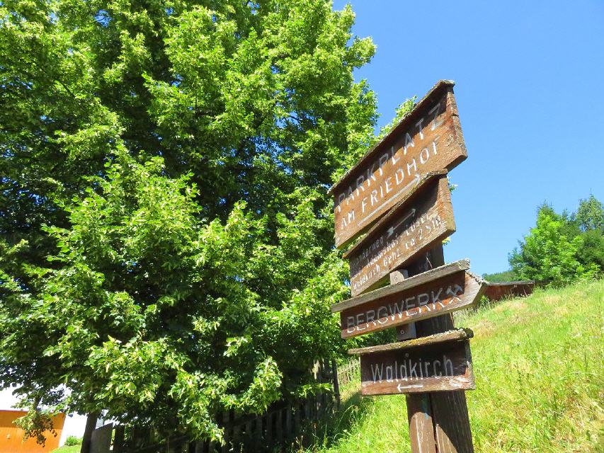 Kurze Variante. Die kleine Runde des Bergbauwanderwegs führt nach ungefähr 40 Minuten zum heutigen Besucherbergwerk. Dort kann man am Stolleneingang des St. Anna Stollens einige Grubenwagen, mit denen das Erz aus den Stollen gefördert wurde und den Turm des Förderschachts sehen. Die gesamte Wegbeschreibung gibt es auf der Internetseite des ZweiTälerLands unter dem folgenden Link: Wegbeschreibung kleine Runde Silbersteig