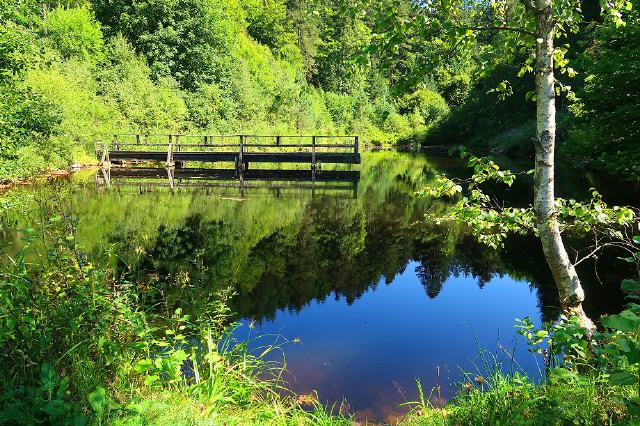 Vom Parkplatz Mühlebühlbrücke Rohrhardsberg an der L 109 (Elztal-Schonach) aus geht es nach wenigen Metern Elz-aufwärts über eine Holzbrücke über die Elz. Was hier als kleines Bächlein beginnt, begibt sich auf eine 121 km lange Reise bis zum Rhein.