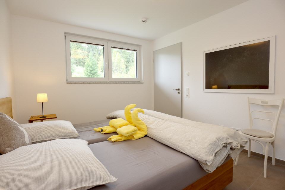 Willkommen in Schönwald im Hochschwarzwald – Ihrer Auszeit auf 1000 Metern Höhe. Unsere moderne Ferienwohnung Schönwaldblick (80 qm + Balkon) wurde 2022 fertiggestellt und liebevoll eingerichtet. Sie erstreckt sich über zwei Stockwerke – das untere Stockwerk mit Küche und Wohnzimmer ist komplett barrierefrei und rollstuhlgerecht.