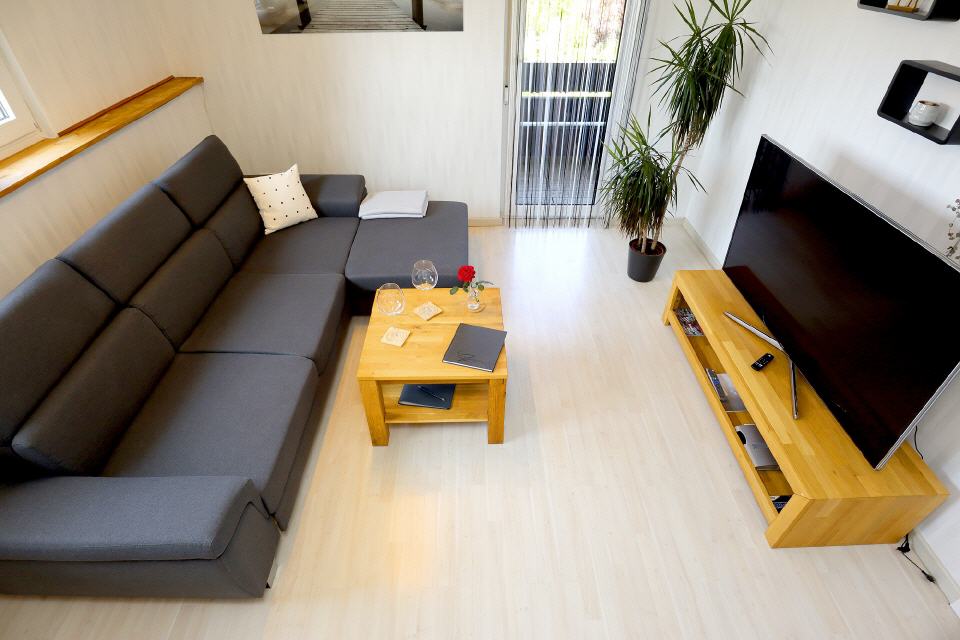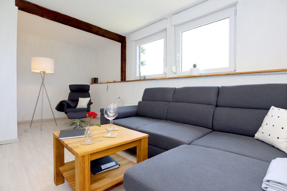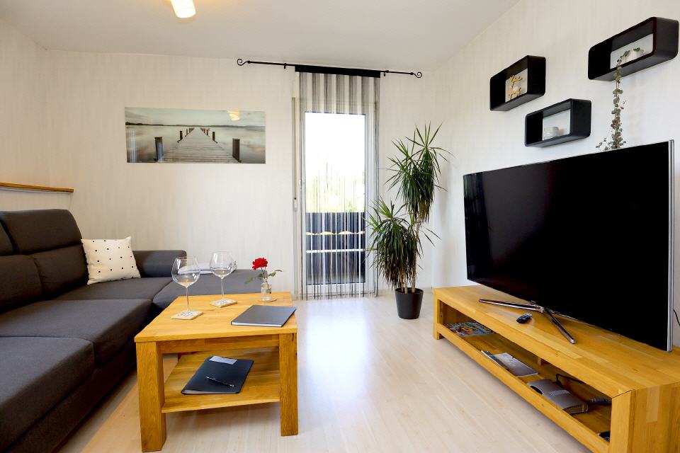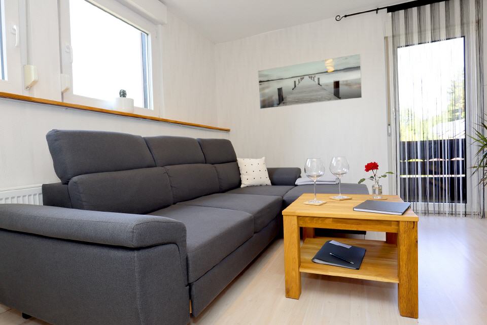 Ausstattung: Wohnfläche 65 qm, Obergeschoss, Balkon, Bettwäsche inklusive, Gartenblick, Gartenmöbel, Handtücher inklusive, Heizung, Rauchmelder, Sofa, Stadtblick, WLAN, keine Haustiere