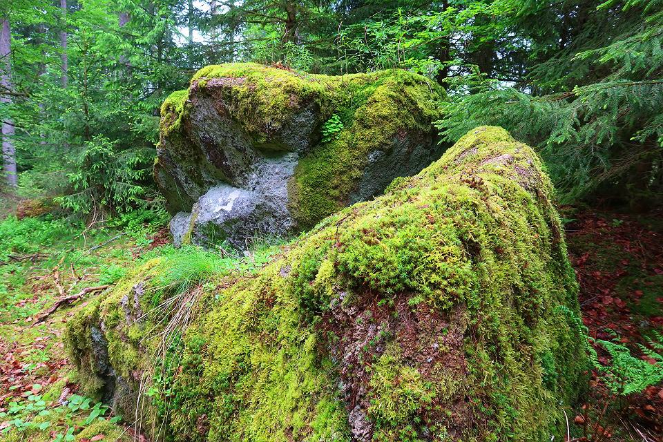 Denn auf dem Monolith ist eine schalenartige Vertiefung zu sehen. Und unter den Moosen und Flechten führt seitlich eine Ablaufrinne fort. Das könnte kein Zufall sein, schließlich haben auch andere Schalensteine im Schwarzwald ähnliche Muster. Könnte es sich hier um einen Opferstein gehandelt haben?