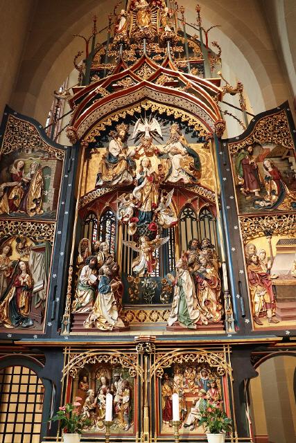 Für die beiden äußerst wertvollen gotischen Altäre von Joseph Dettlinger wurden mehrere Tausend Mark gespendet. Bis Dezember war die Kirche vollständig bedacht und weiß verputzt. Stadtpfarrer Hermann Rinkenburger hatte auf Reisen Anregungen für sein Projekt gesammelt. Der Bau des 68 Meter hohen Turms wurde im folgenden Jahr beendet. Am 30. Juli 1901 wurde der Schlussstein gesetzt. 1907 erfolgte die feierliche Konsekration durch den Freiburger Weihbischof Justus Knecht. Der Münsterbau hatte 650.000 Mark gekostet.