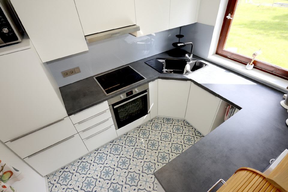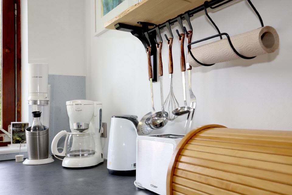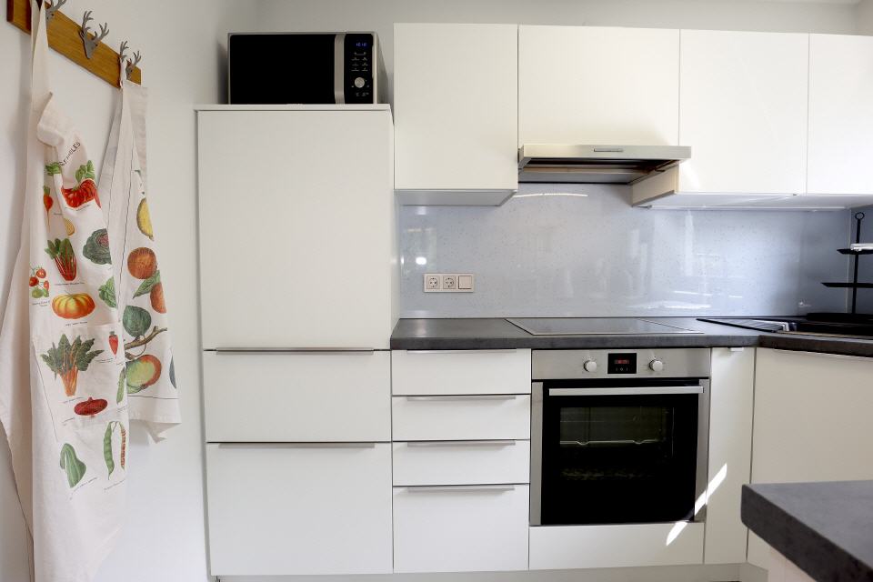 - Kochen: Einbauküche, Ceran-Herd, Backofen, Spüle, Kühlschrank, Geschirr, Kochtöpfe, Besteck, Geschirr- bzw. Handtücher, Mikrowelle, Kaffeemaschine, Sodastream, komplett eingerichtet