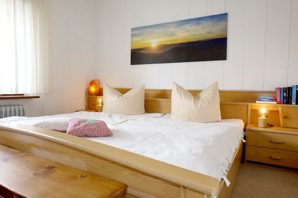 Sie möchten zentral und doch in ruhiger Lage im schönsten Hochtal des Schwarzwaldes Ihren wohlverdienten Urlaub verbringen? Dann ist unsere Ferienwohnung perfekt. Die neu renoviert Fewo beinhaltet ein gemütliches Wohnzimmer mit Essbereich, zwei separate Schlafzimmer, eine neue Küche mit kompletter Ausstattung (Spülmaschine, Mikrowelle, Kaffeemaschine und Bernauer Sprudelwasser – Sodastream), ein neues Badezimmer mit Dusche. Die Lage der Wohnung ist zentral und ruhig, sehr sonnig und gibt schöne Blicke auf die umliegenden Berge. Im Anschluss zur eigenen Terrasse ist eine große Liege- und Spielwiese.