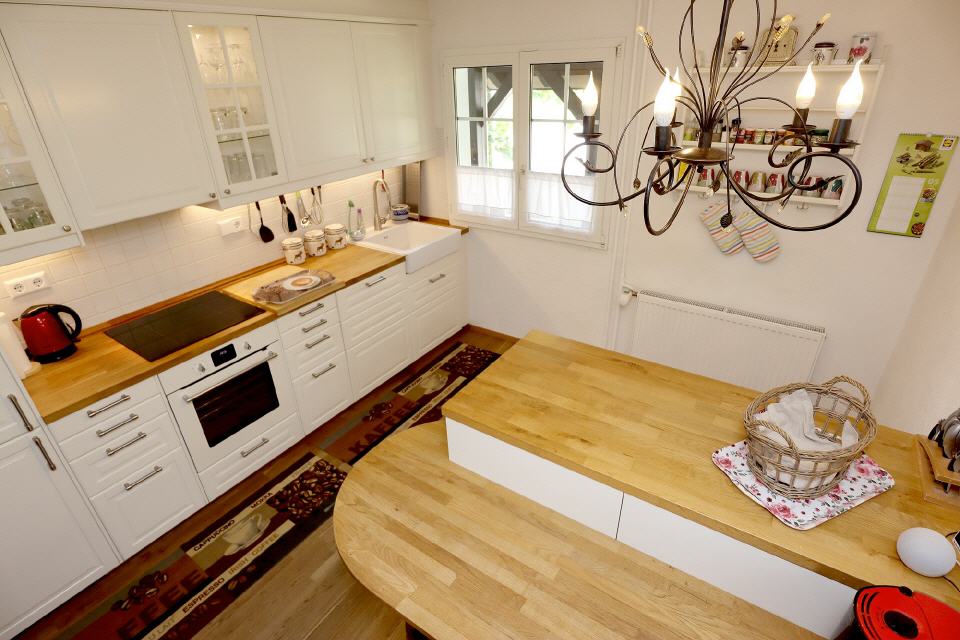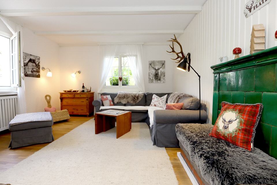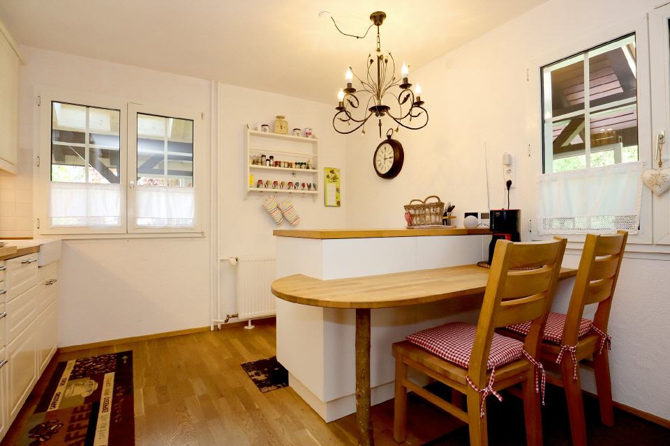 Die geschmackvolle Wohnküche lässt keine Wünsche offen und lädt zum gemeinsamen Kochen ein. Im großen Wohn- und Esszimmer finden sich sowohl ein extravaganter Schwedenofen als auch ein wunderschöner, alter Kachelofen mit Sitzbank, der an die Zentralheizung angeschlossen ist. Diese beiden Öfen strahlen nicht nur in der kalten Jahreszeit viel Gemütlichkeit aus.