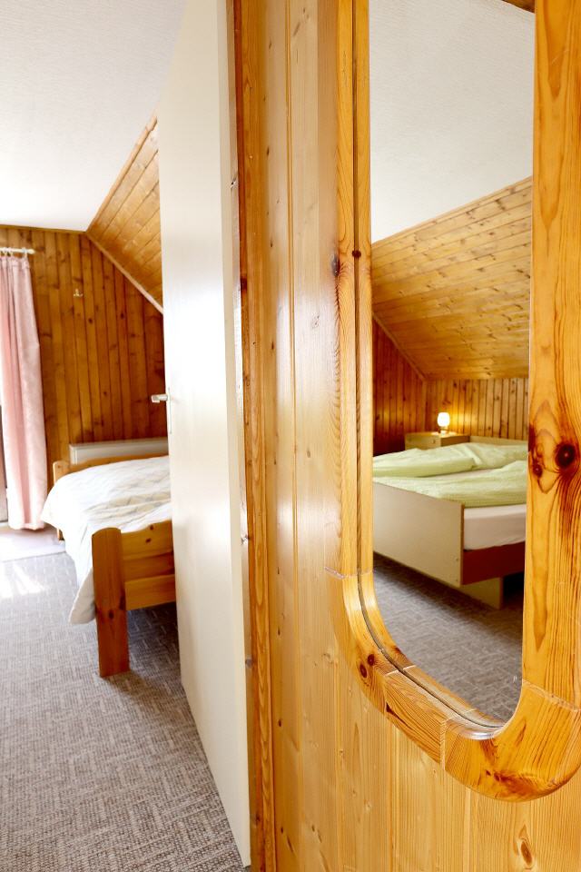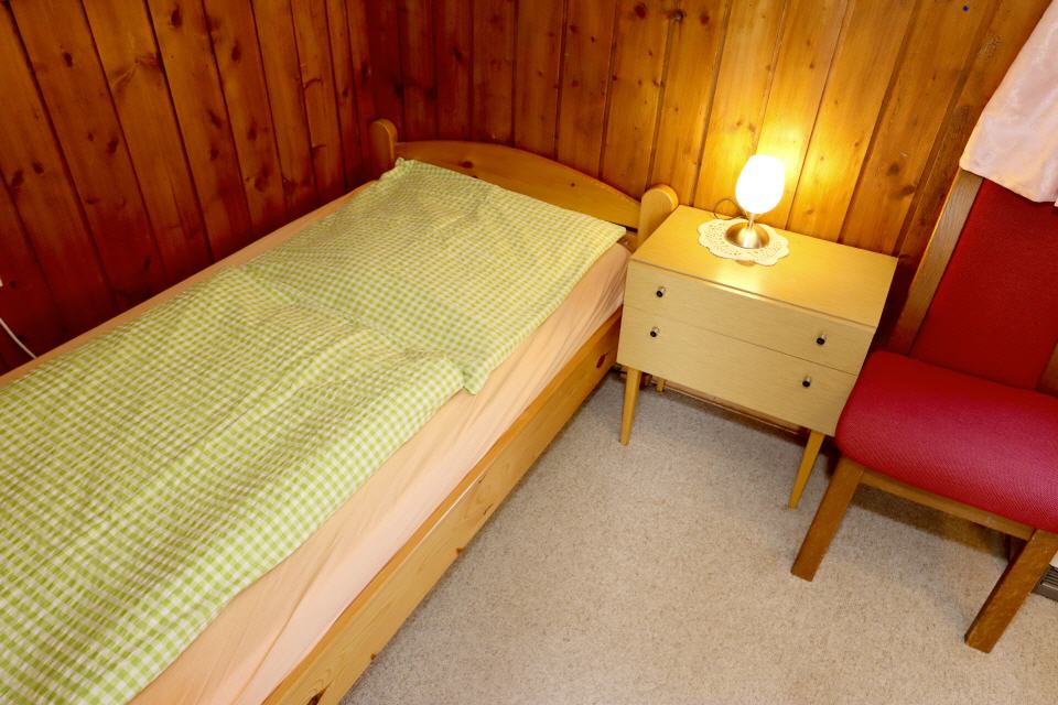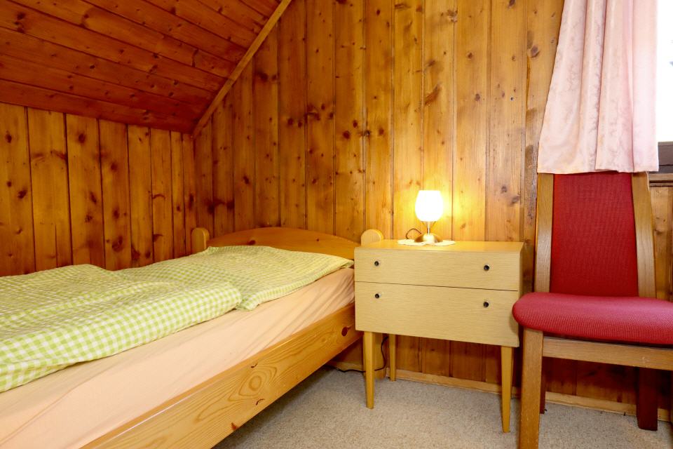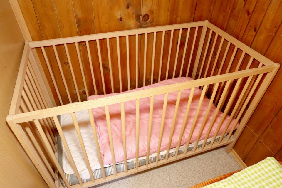 Im zweiten Zimmer stehen zwei getrennte Betten sowie ein Kinderbett.