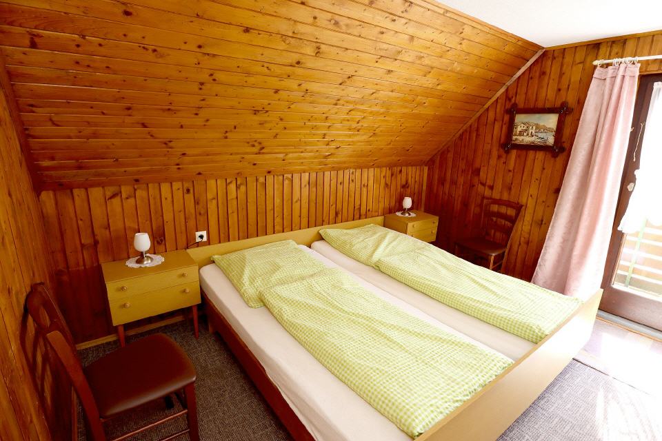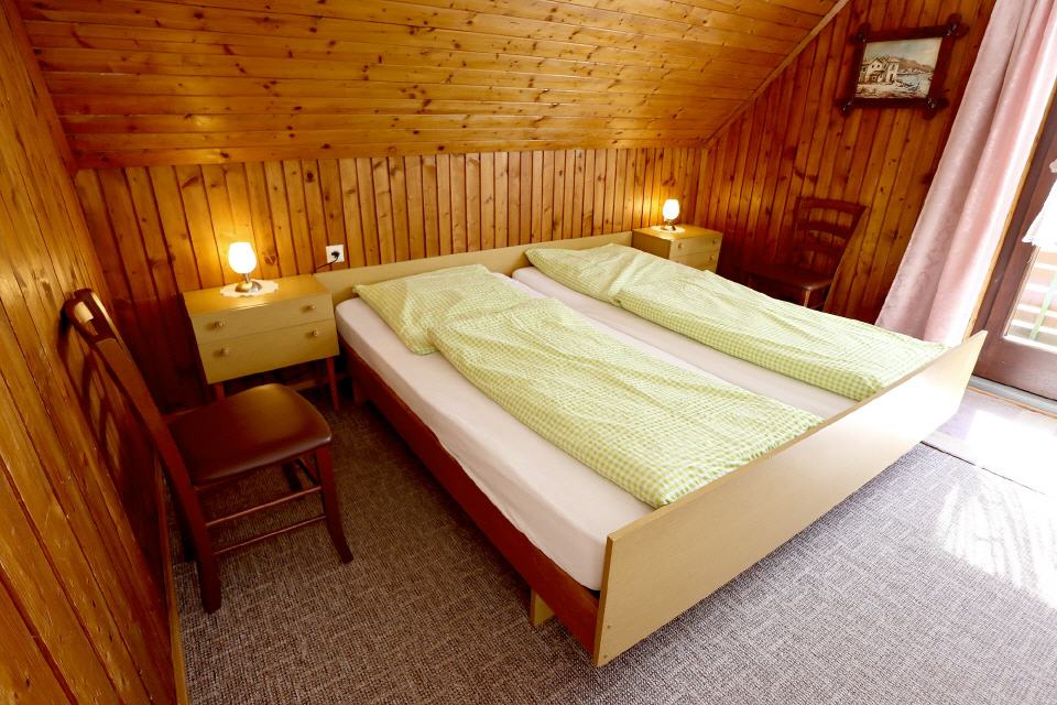 Das Balkonzimmer hat ein Ehebett und ein Französisches Bett.