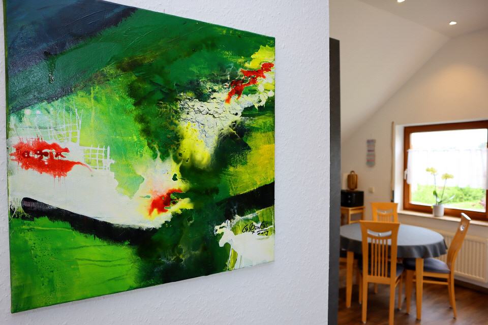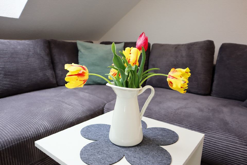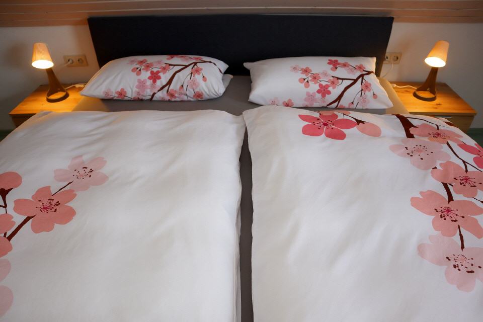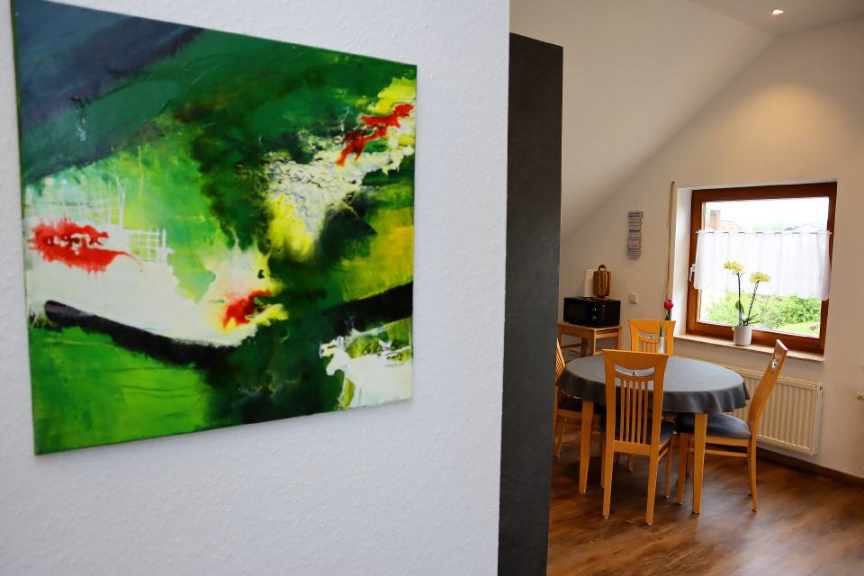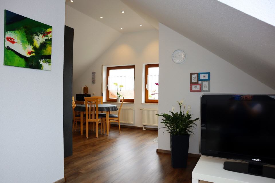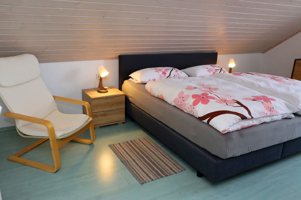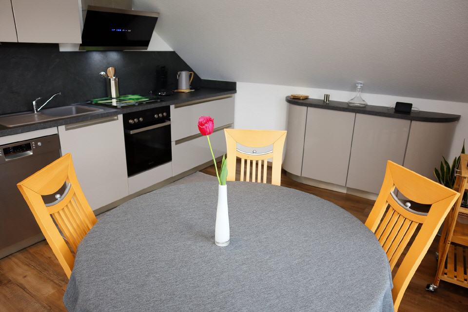Die Ferienwohnung Kuss liegt im Oberschoss unseres Hauses. Die Nichtraucher-Wohnung für bis 4 Personen hat eine Wohnfläche von etwa 70 Quadratmeter, verfügt über einen Wohn- / Essraum, 2 Schlafzimmer, Bad mit Dusche und einen kleinen Balkon. Die Fewo ist komplett neu und eingerichtet. WLAN ist vorhanden. Mit Rücksicht auf andere Gäste dürfen in der Wohnung keine Haustiere gehalten werden.
