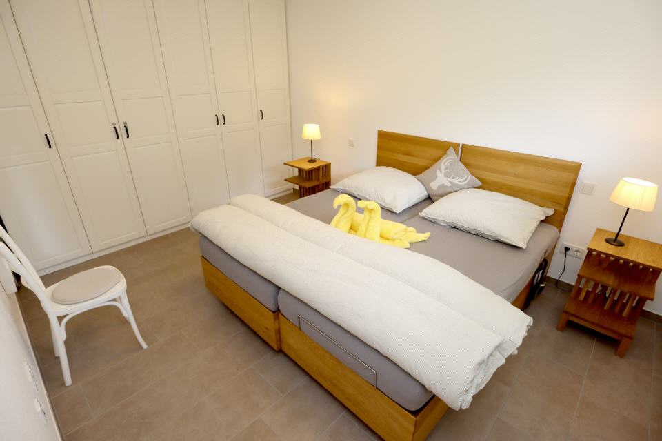 Schlafzimmer mit höhenverstellbarem Komfortbett (Einzel- oder Doppelbett möglich)