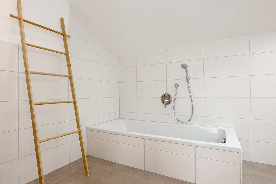 Stockwerk mit extra Zimmer, Bad mit Badewanne, Sofa und Dachterrasse