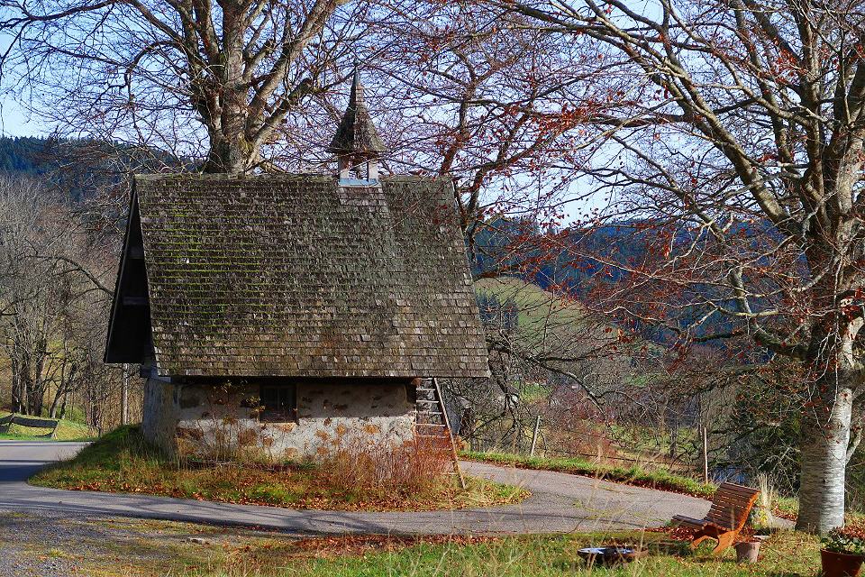 Weiter geht's zum Pfaffenhof mit seiner Hofkapelle. Sie stammt aus dem 17. Jahrhundert und wurde an die Schmiede des Hofes gebaut. Der Schwarzwaldhof selbst stammt aus dem Jahr 1613.