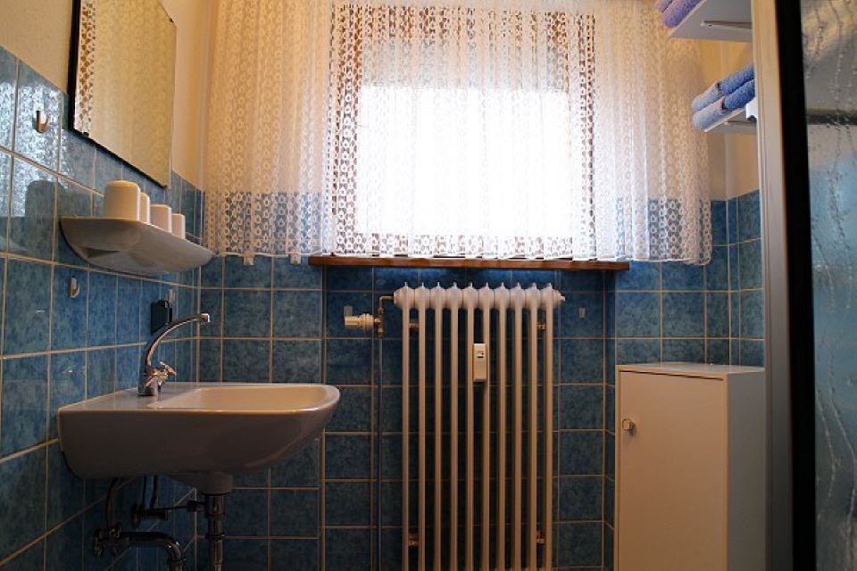 Schlafzimmer: Doppelbetten mit verstellbaren Lattenrosten, 1 Waschbecken in jedem Zimmer, Bettwäsche wird gestellt