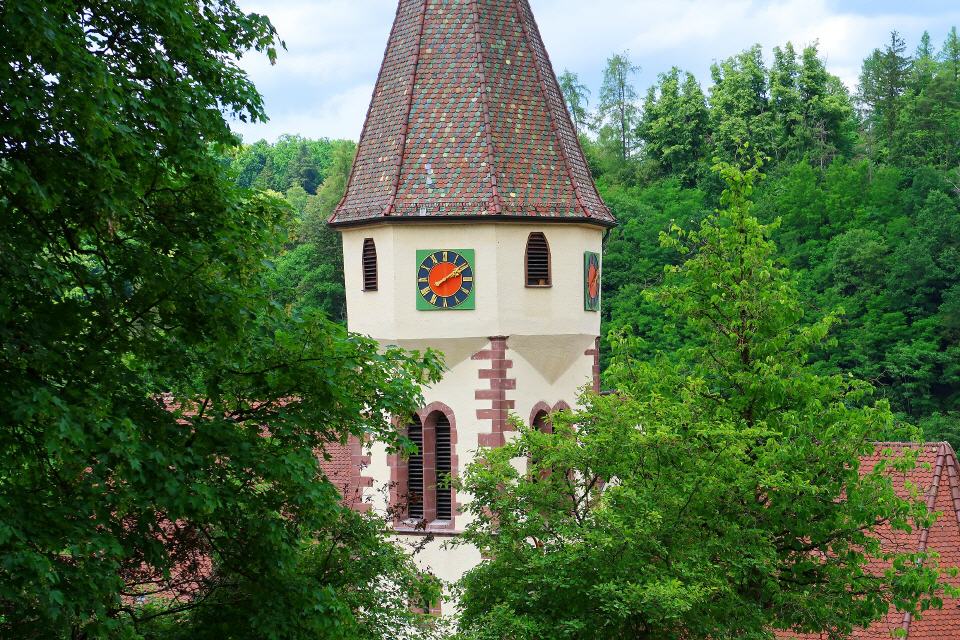 - Kloster Maria Reuthin. Malerisch liegt das einstige Frauenkloster direkt am klaren Flüsschen Nagold. Im Mittelalter lebten hier Dominikanerinnen. Was die vornehmen Adelstöchter als Mitgift mitbrachten, sorgte über die Jahrhunderte für den Reichtum des Klosters. Nach der Reformation elen einige der Klostergebäude den Zeitläufen zum Opfer. Aber was sich bis heute erhalten hat, ist eindrucksvoll genug. Der mächtige Fruchtkasten, in dem die Abgaben gesammelt und Vorräte verwahrt wurden, zeugt immer noch vom Wohlstand.