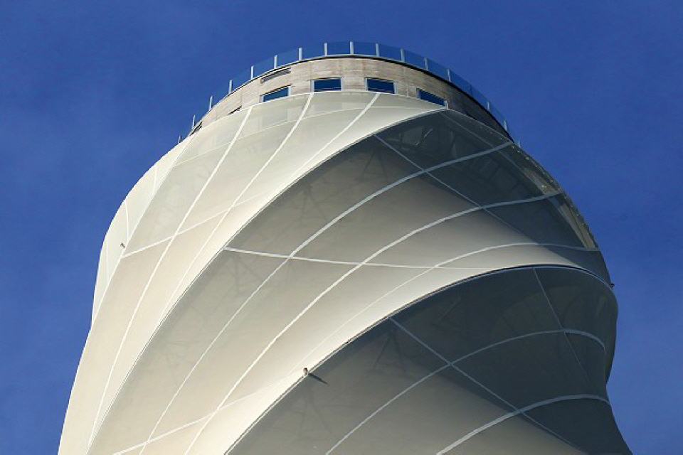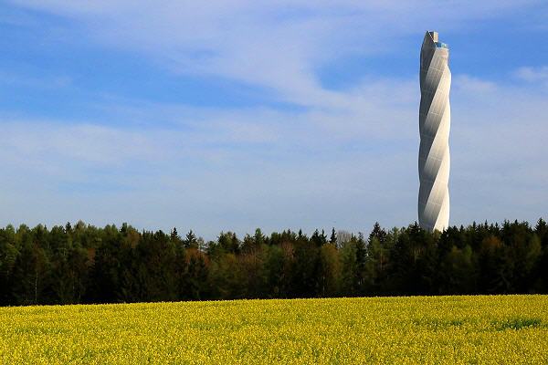 Der Turm symbolisiert als Bauwerk des technologischen Zeitalters die heutige Ingenieurkunst. Er steht als öffentliches Symbol aber ebenso für die Stadt Rottweil und daher im Dialog mit ihren historischen Kirch- und Wehrtürmen aus dem Mittelalter. Schon allein das Erscheinungsbild ist Extraklasse. Trotz der imposanten Höhe wird ein leichtes und filigranes Erscheinungsbild gewahrt. Die Architekten Helmut Jahn und Werner Sobek verkleiden den Betonschaft mit einer Stoffhülle aus Glasfasergewebe. Das Gewebe beginnt am Fuß engmaschig, gibt nach oben hin immer mehr vom Turm preis und reflektiert das Licht zu unterschiedlichen Tages- und Jahreszeiten verschieden – dadurch bekommt der Turm je nach Wetterlage und Zeit eine andere Anmutung.
