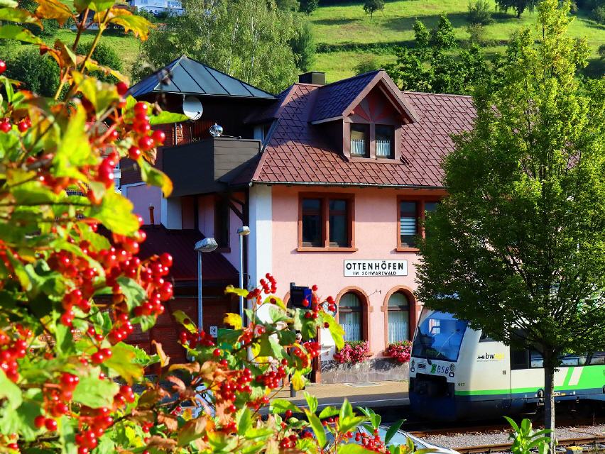 Außergewöhnlich gut ist die öffentliche Verkehrsanbindung von Ottenhöfen. Zentral gelegener Bahnhof, moderne Nahverkehrszüge bringen den Gast nach Kappelrodeck und Achern, Busverbindung nach Seebach und auf die Schwarzwald Hochstraße. Das Zehn-Tälerdorf Ottenhöfen im Schwarzwald liegt zwischen Schwarzwaldhochstraße und Badischer Weinstraße, 35 km entfernt von Straßburg / Elsaß, Baden-Baden und Freudenstadt inmitten einer einzigartigen Naturlandschaft.